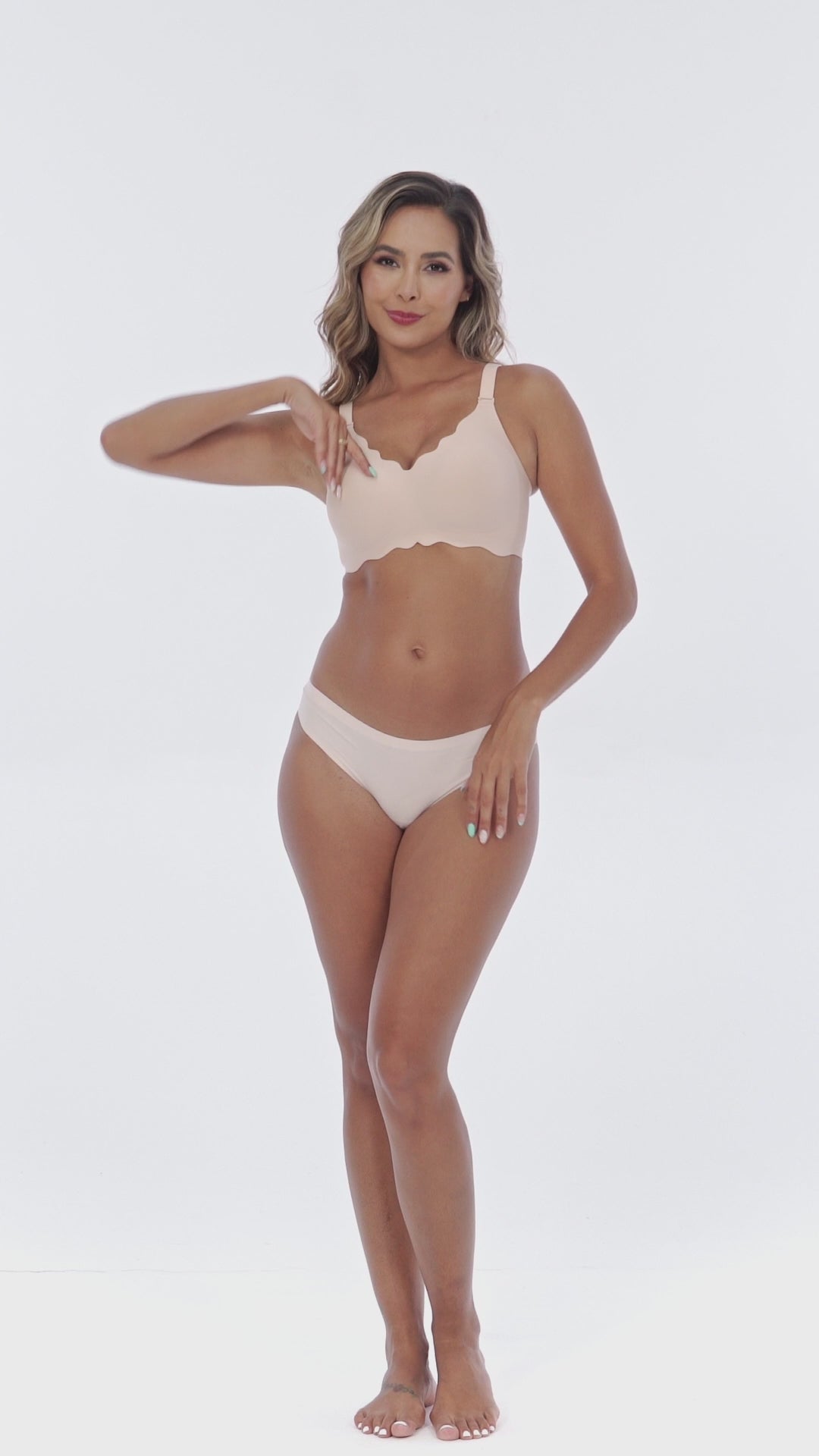 Med sin karakteristiske feminine bølgede V-udskæring og bløde gel-strips i siden og under barmen, får du en BH der følger dine former – uden at klemme, stramme eller efterlade mærker.
