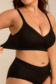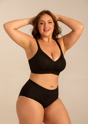 FlexiComfort V2 er vores videreudviklede bøjlefri BH, designet til kvinder der ønsker maksimal komfort uden at gå på kompromis med støtte og form. Den sømløse konstruktion og det bløde, fleksible materiale former sig naturligt efter kroppen og giver et smukt, afrundet udtryk – helt uden trykpunkter.